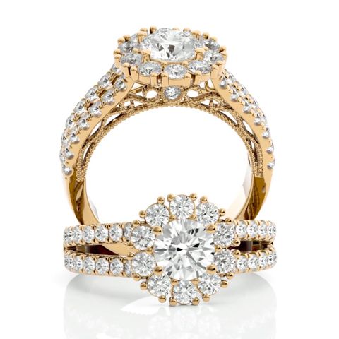 2 1/4 Carat Round Shape Halo Diamond Engagement Ring In 14K Yellow Gold
