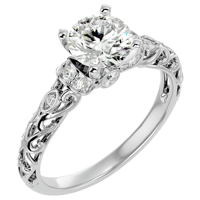 2 1/4 Carat Vintage Diamond Engagement Ring In 14 Karat White Gold