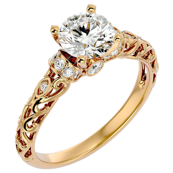 2 1/4 Carat Vintage Diamond Engagement Ring In 14 Karat Yellow Gold