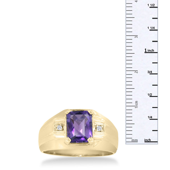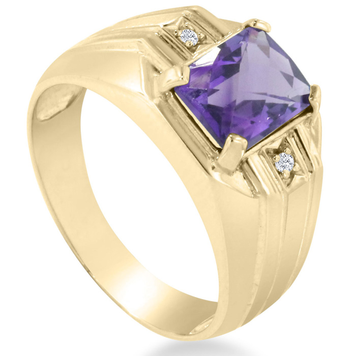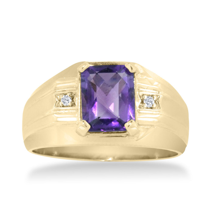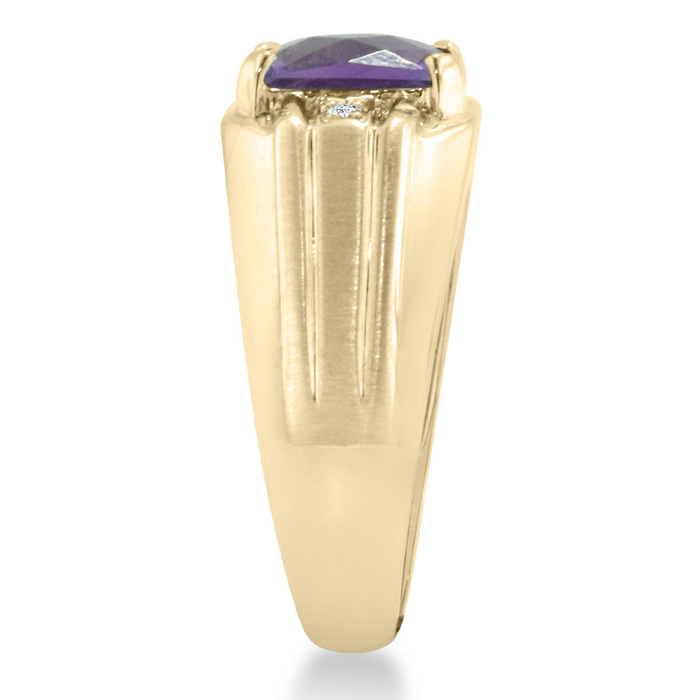 "I love a man who is comfortable in purple, this yellow gold amethyst and diamond, men's ring is sure to grab attention and add a little pop of color to your everyday attire, or would pair nicely with a purple tie or polo!