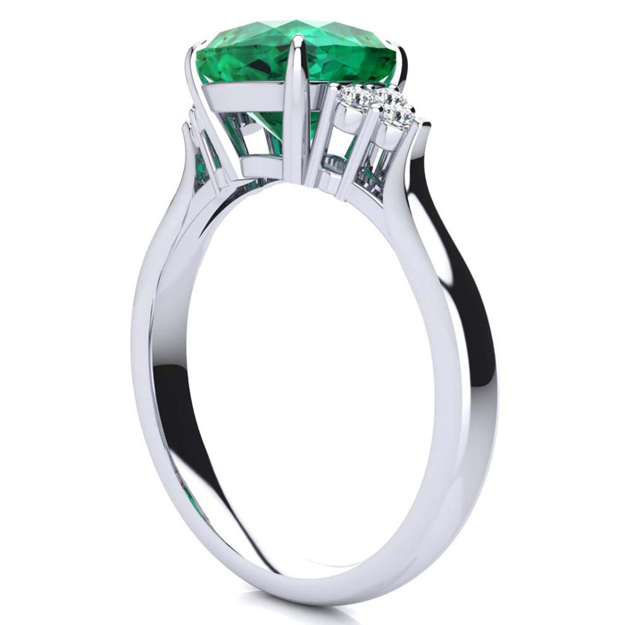 2 1/5 Carat Cushion Cut Emerald and Diamond Ring In 14K White Gold