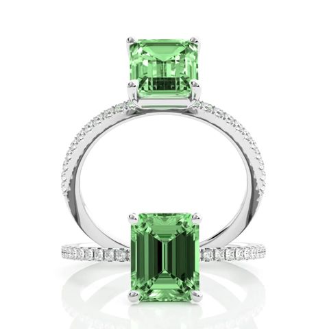 2 1/5 Carat Green Amethyst and Diamond Ring In 14 Karat White Gold