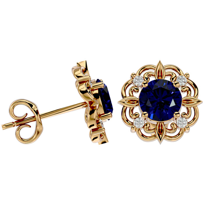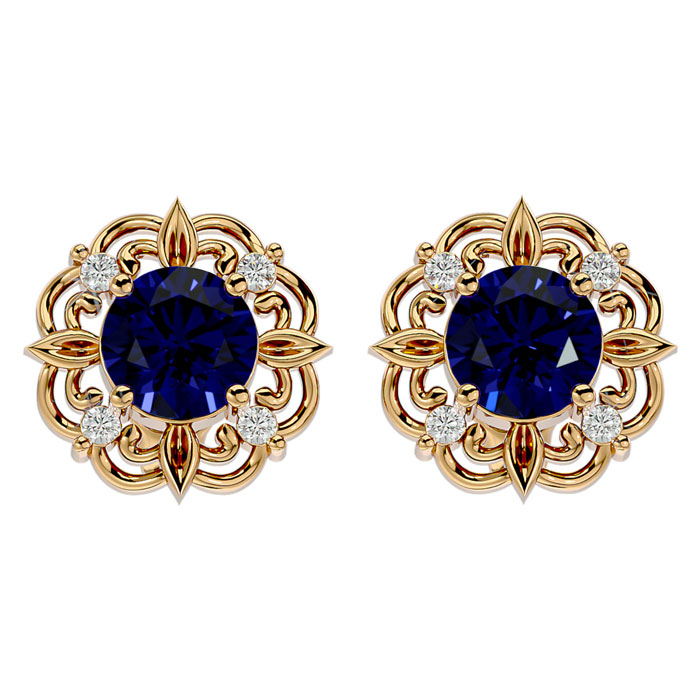 Retrograde Birthstones™ 2 1/5 Carat Sapphire and Diamond Antique Stud Earrings In 14 Karat Yellow Gold