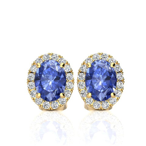 2 Carat Oval Shape Tanzanite and Halo Diamond Stud Earrings In 14 Karat Yellow Gold