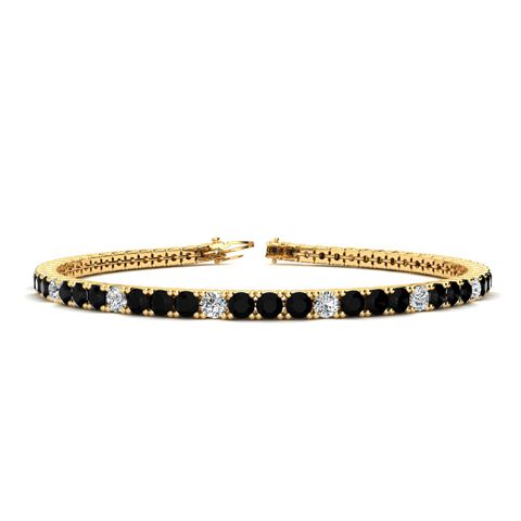 2 2/3 Carat Black And White Diamond Tennis Bracelet In 14 Karat Yellow Gold, 7 Inches