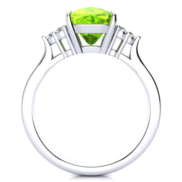 2 2/3 Carat Cushion Cut Peridot and Diamond Ring In 14K White Gold