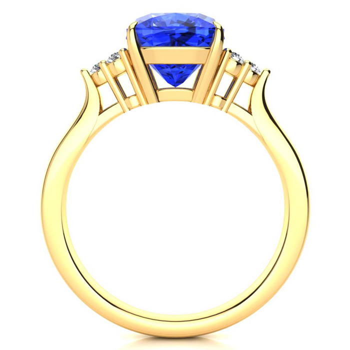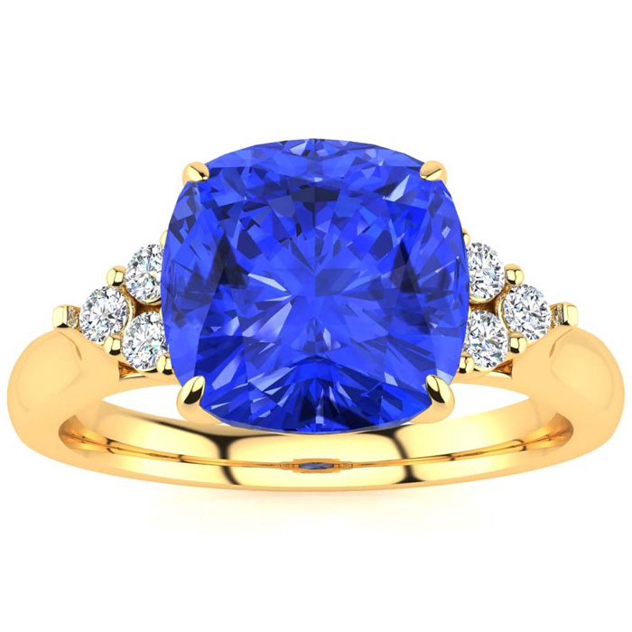 2 2/3 Carat Cushion Cut Tanzanite and Diamond Ring In 14K Yellow Gold