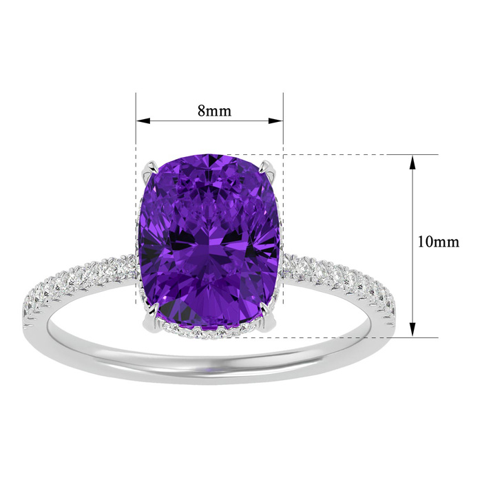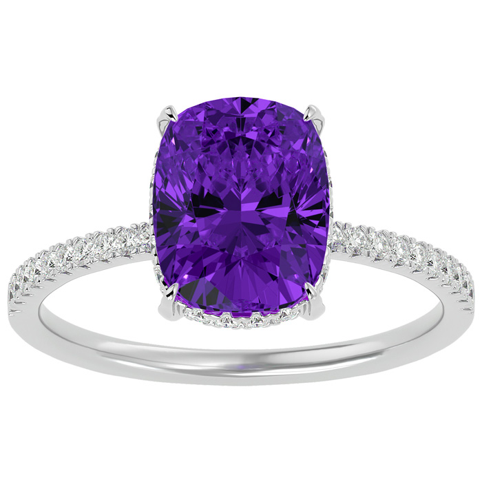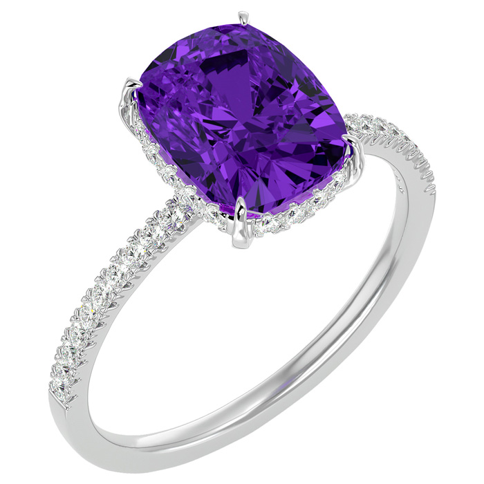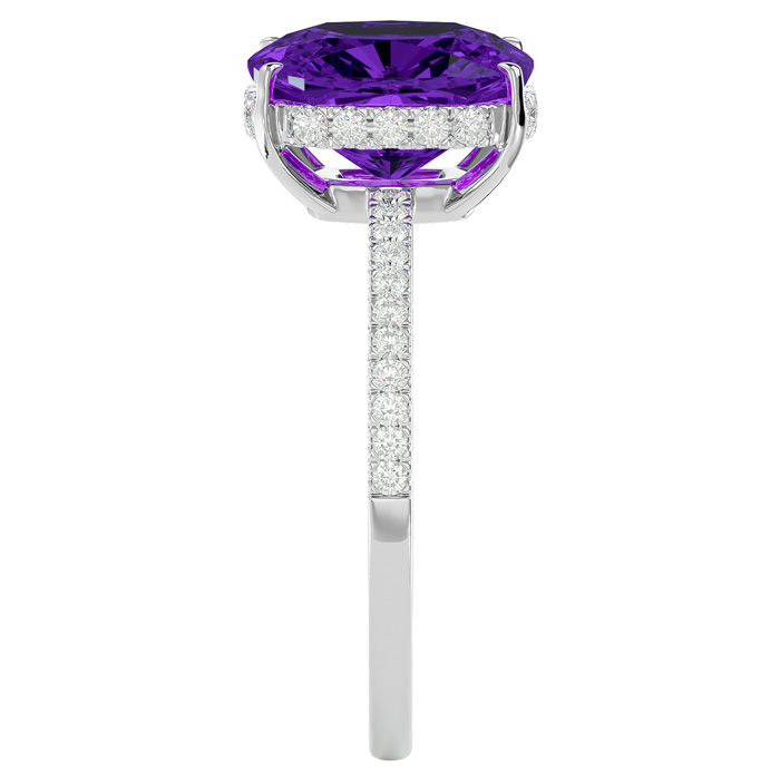 2 3/4 Carat Antique Cushion Shape Amethyst and Hidden Halo Diamond Ring In 14 Karat White Gold