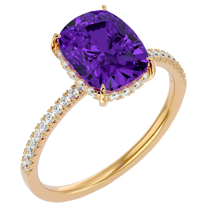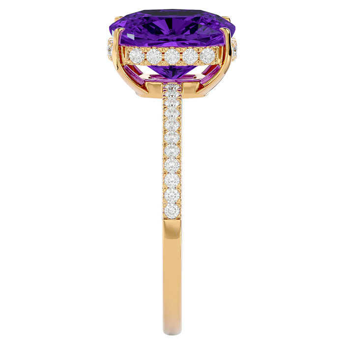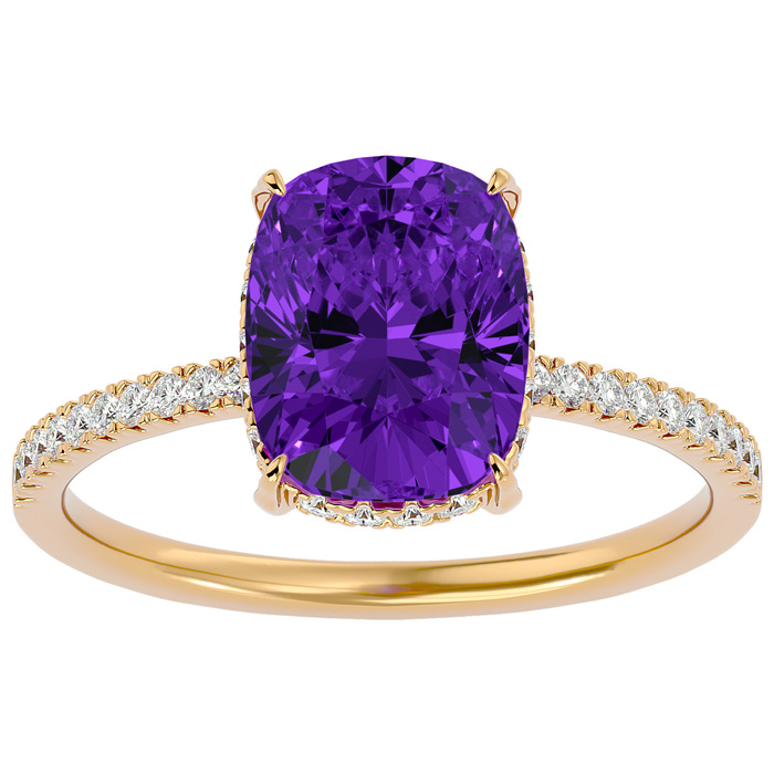 2 3/4 Carat Antique Cushion Shape Amethyst and Hidden Halo Diamond Ring In 14 Karat Yellow Gold