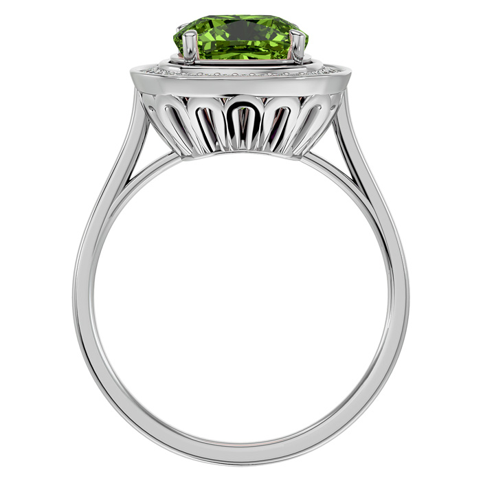 2 3/4 Carat Cushion Cut Peridot and Halo Diamond Ring In 14K White Gold