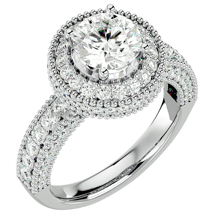 2 3/4 Carat Natural Halo Diamond Engagement Ring In 14 Karat White Gold
