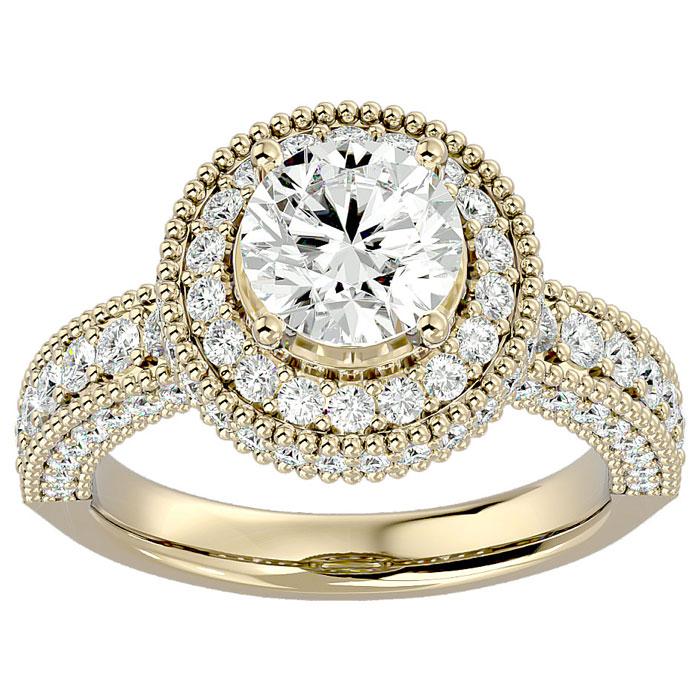 2 3/4 Carat Natural Halo Diamond Engagement Ring In 14 Karat Yellow Gold