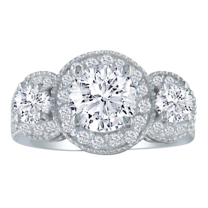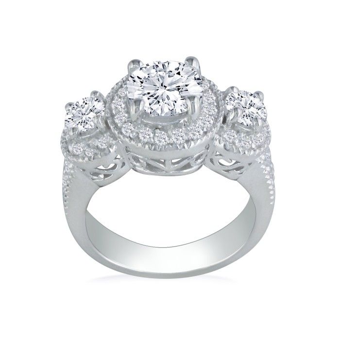 2 3/4 Carat Natural Halo Three Diamond Ring in 14k White Gold