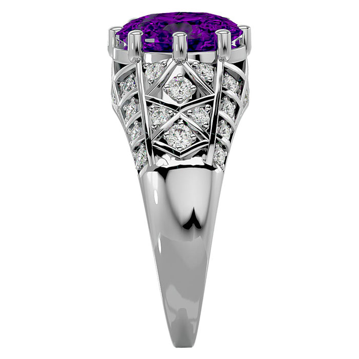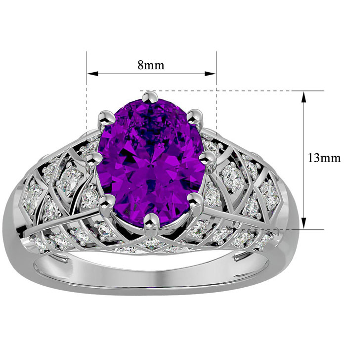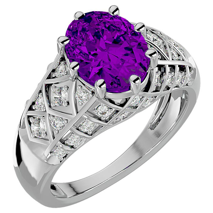 2 3/4 Carat Oval Shape Amethyst and Diamond Ring In 10 Karat White Gold