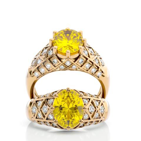 2 3/4 Carat Oval Shape Citrine and Diamond Ring In 10 Karat Yellow Gold