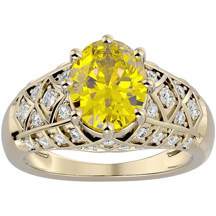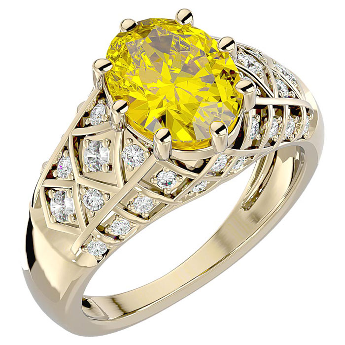 2 3/4 Carat Oval Shape Citrine and Diamond Ring In 10 Karat Yellow Gold