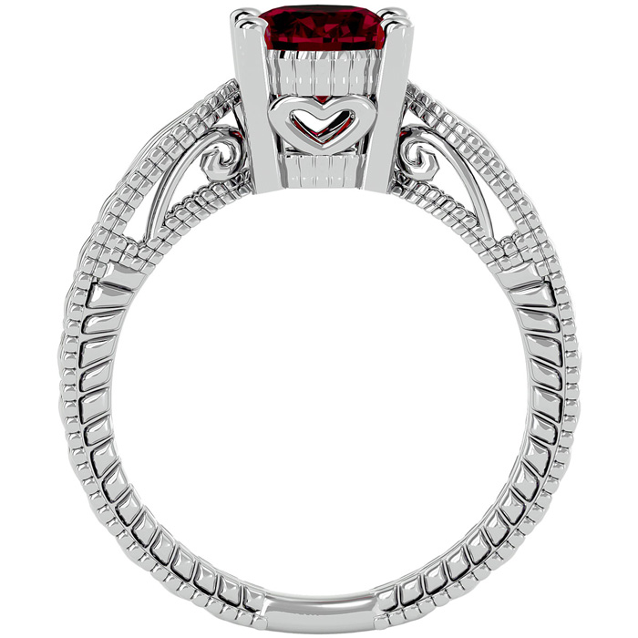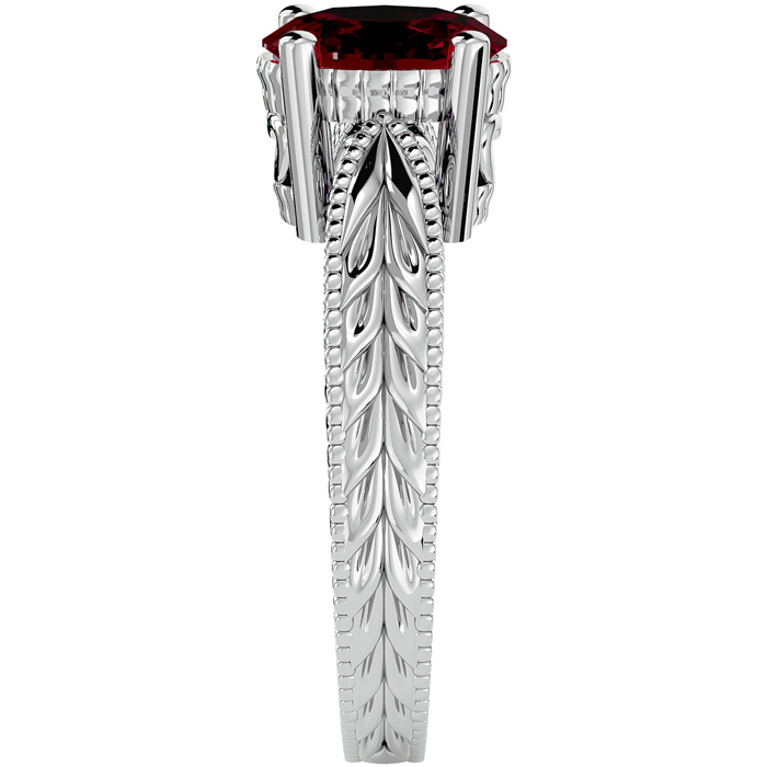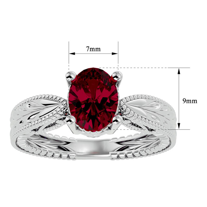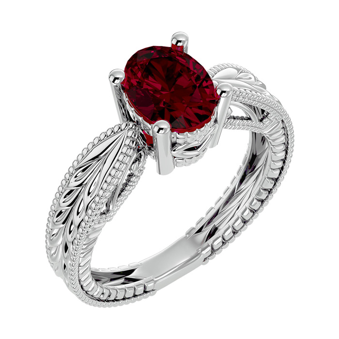 2 3/4 Carat Oval Shape Ruby Ring With Tapered Etched Band In 14 Karat White Gold