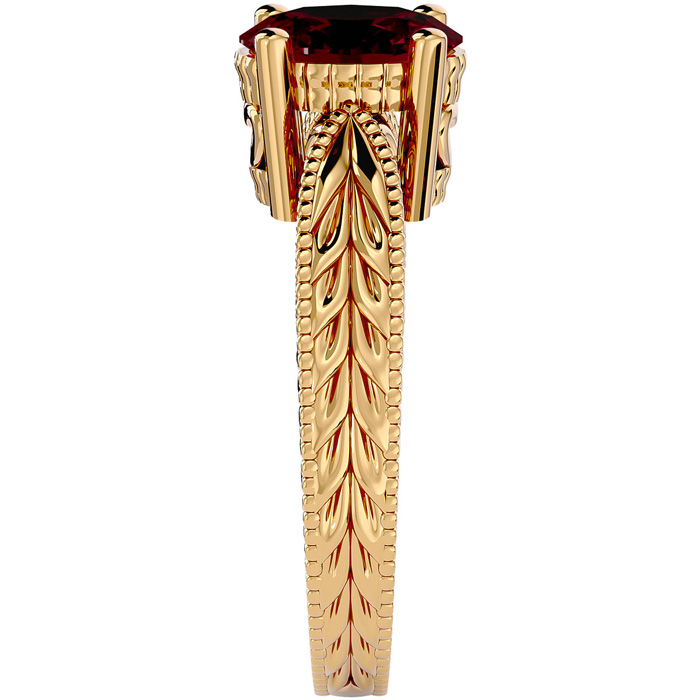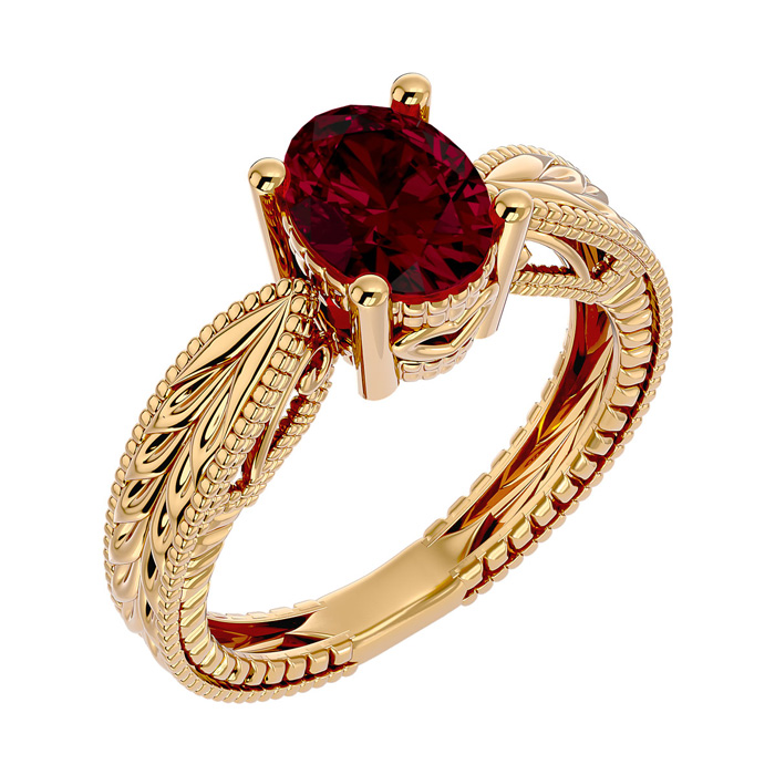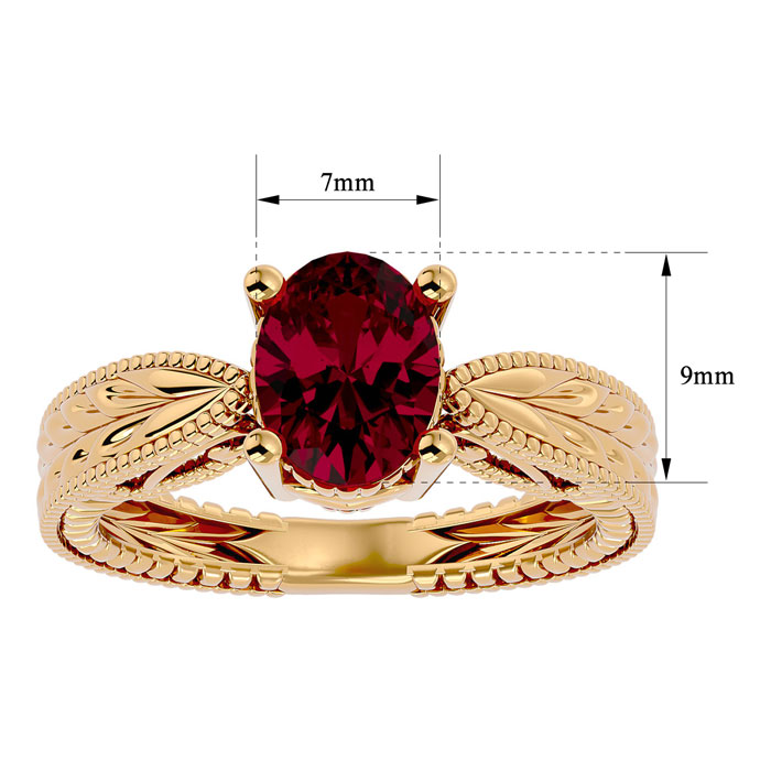2 3/4 Carat Oval Shape Ruby Ring With Tapered Etched Band In 14 Karat Yellow Gold
