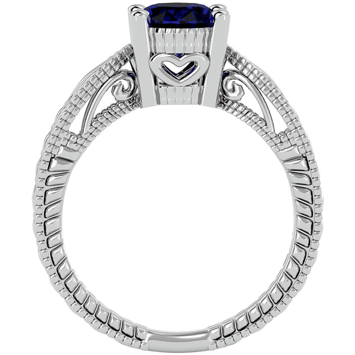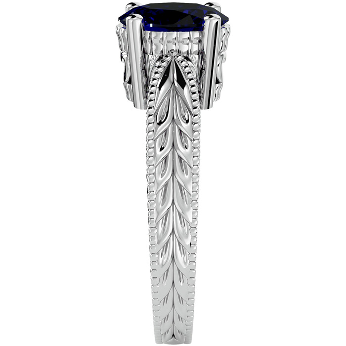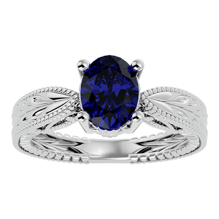 2 3/4 Carat Oval Shape Sapphire Ring With Tapered Etched Band In 14 Karat White Gold