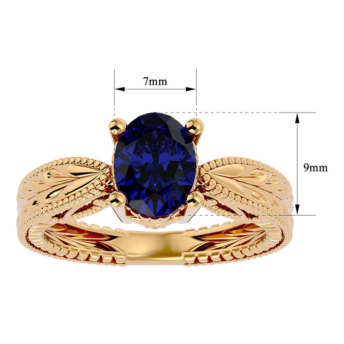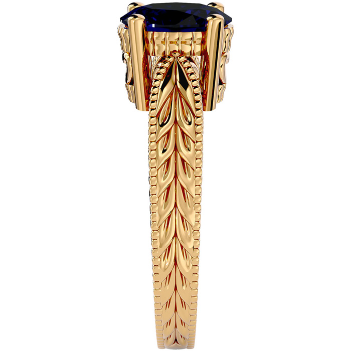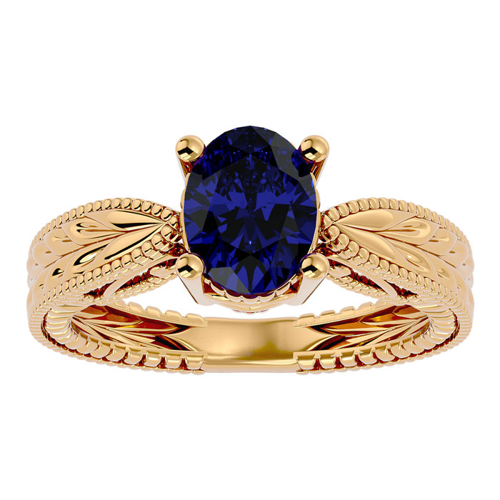 2 3/4 Carat Oval Shape Sapphire Ring With Tapered Etched Band In 14 Karat Yellow Gold