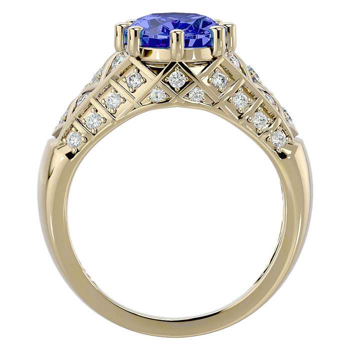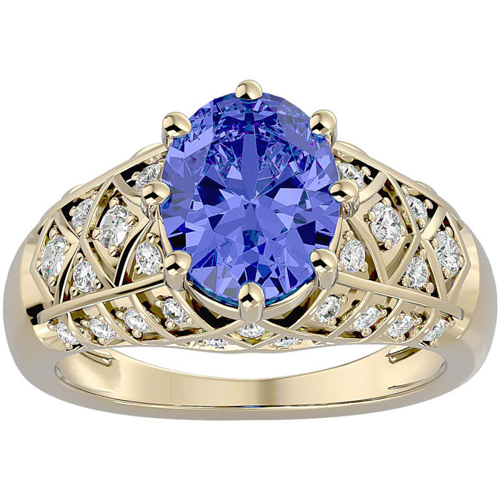2 3/4 Carat Oval Shape Tanzanite and Diamond Ring In 10 Karat Yellow Gold