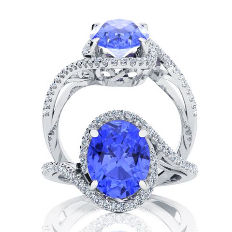 2 3/4 Carat Oval Shape Tanzanite and Halo Diamond Ring In 14 Karat White Gold