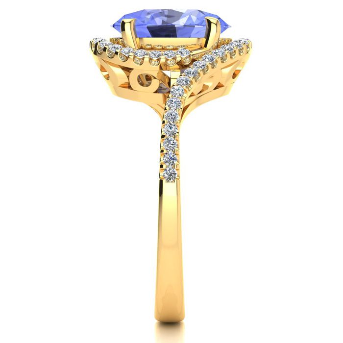 2 3/4 Carat Oval Shape Tanzanite and Halo Diamond Ring In 14 Karat Yellow Gold