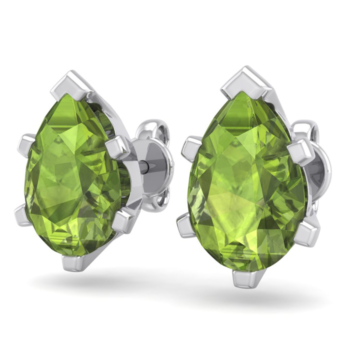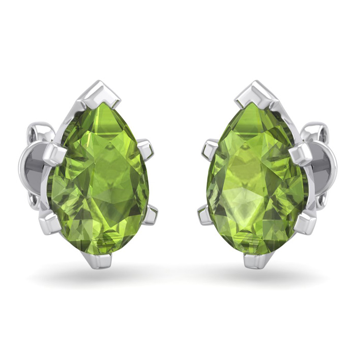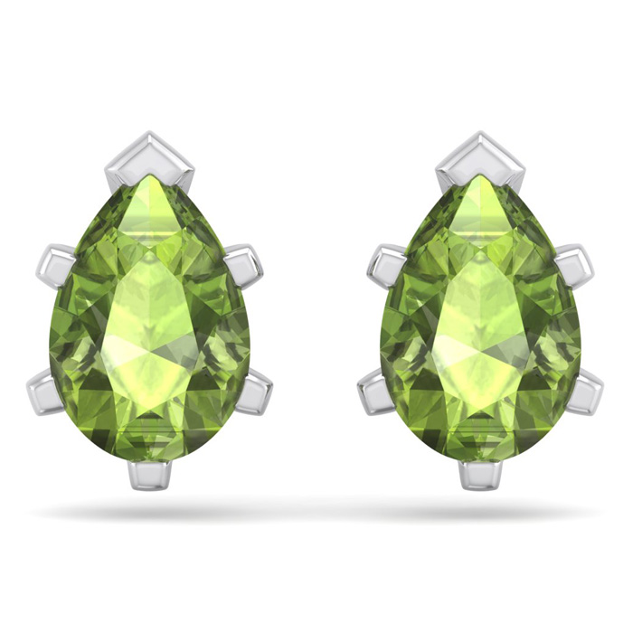 2 3/4 Carat Pear Shape Peridot Stud Earrings In Sterling Silver
