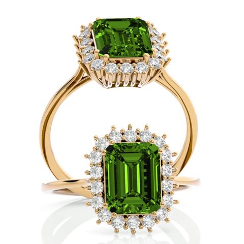 2 3/4 Carat Peridot and Halo Diamond Ring In 14K Yellow Gold