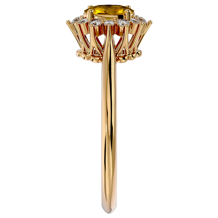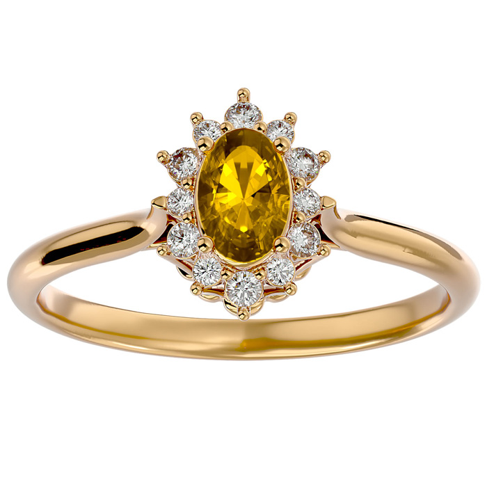 2/3 Carat Oval Shape Citrine and Halo Diamond Ring In 14 Karat Yellow Gold