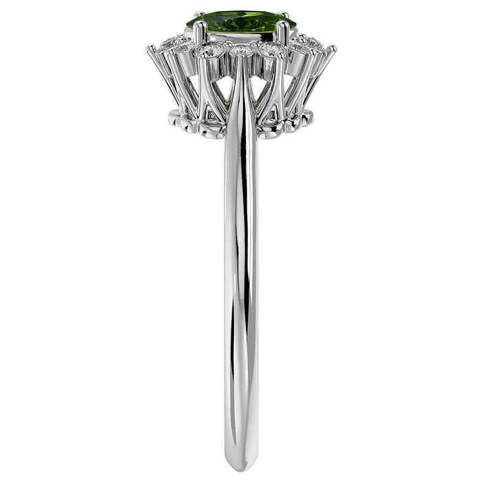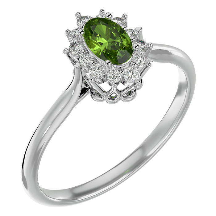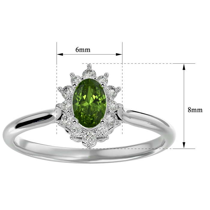 2/3 Carat Oval Shape Peridot and Halo Diamond Ring In 14 Karat White Gold