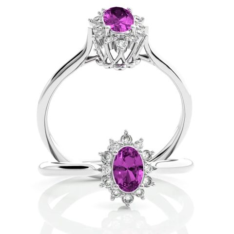 2/3 Carat Oval Shape Pink Topaz and Halo Diamond Ring In 14 Karat White Gold