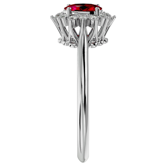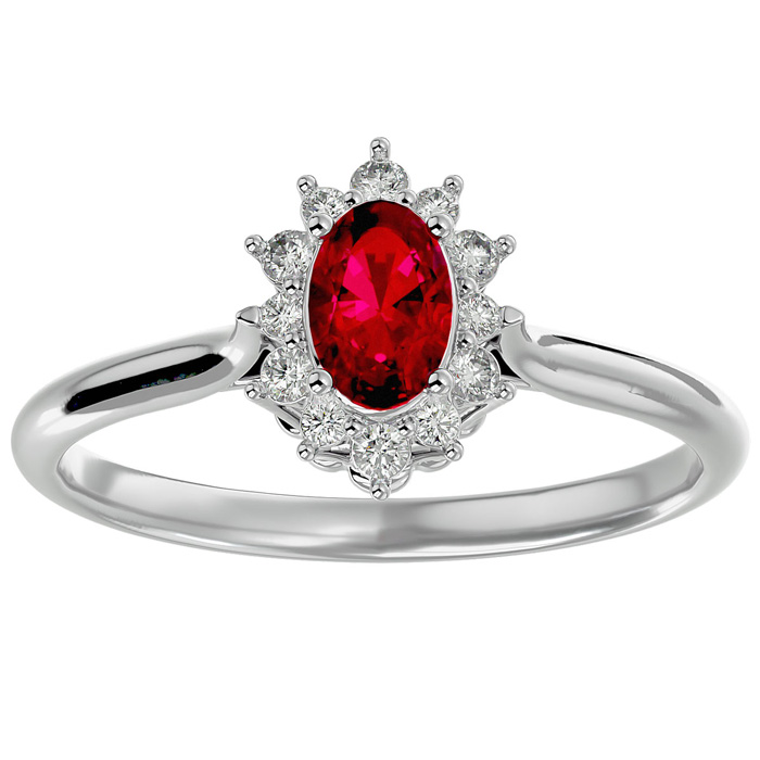 2/3 Carat Oval Shape Ruby and Halo Diamond Ring In 14 Karat White Gold