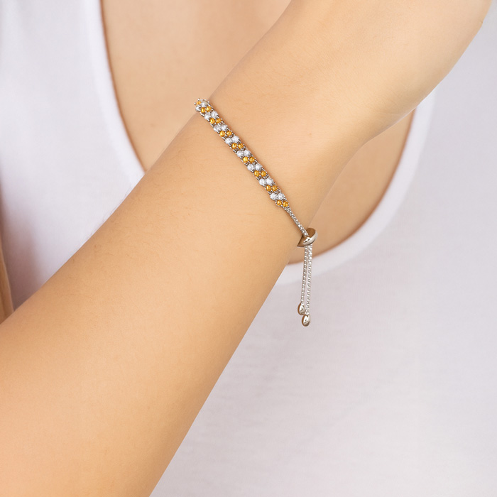 2.70 Carat Citrine and Opal Cluster Bolo Bracelet In Sterling Silver, Adjustable 6-9 Inches