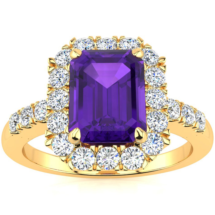 2 Carat Amethyst and Halo Diamond Ring In 14 Karat Yellow Gold