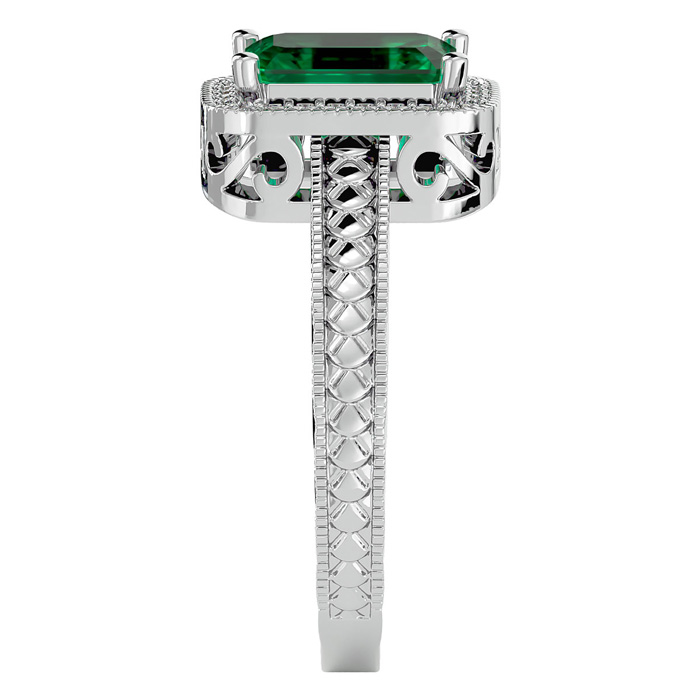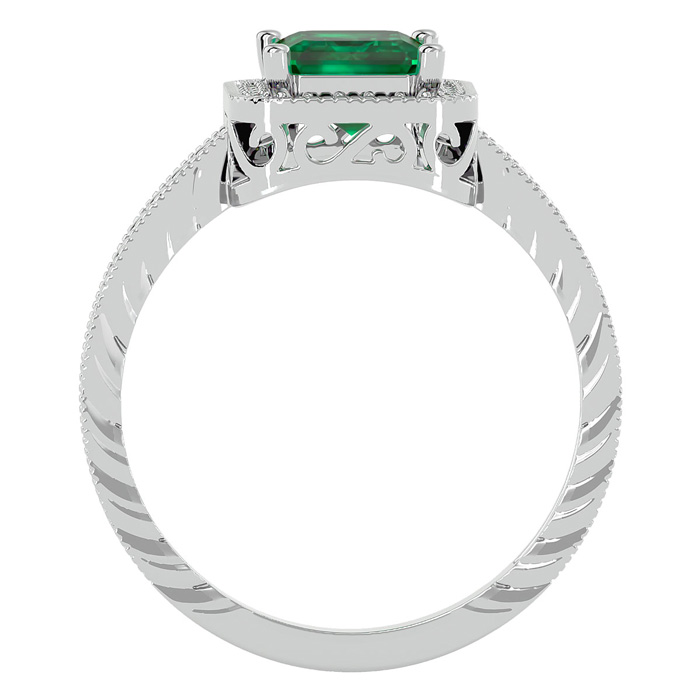 2 Carat Antique Style Emerald and Diamond Ring in 14 Karat White Gold
