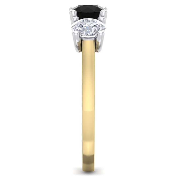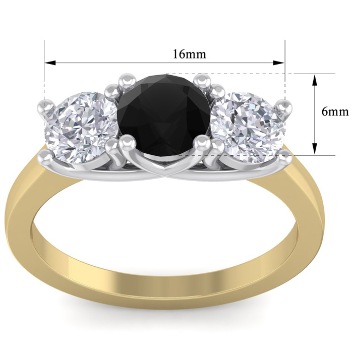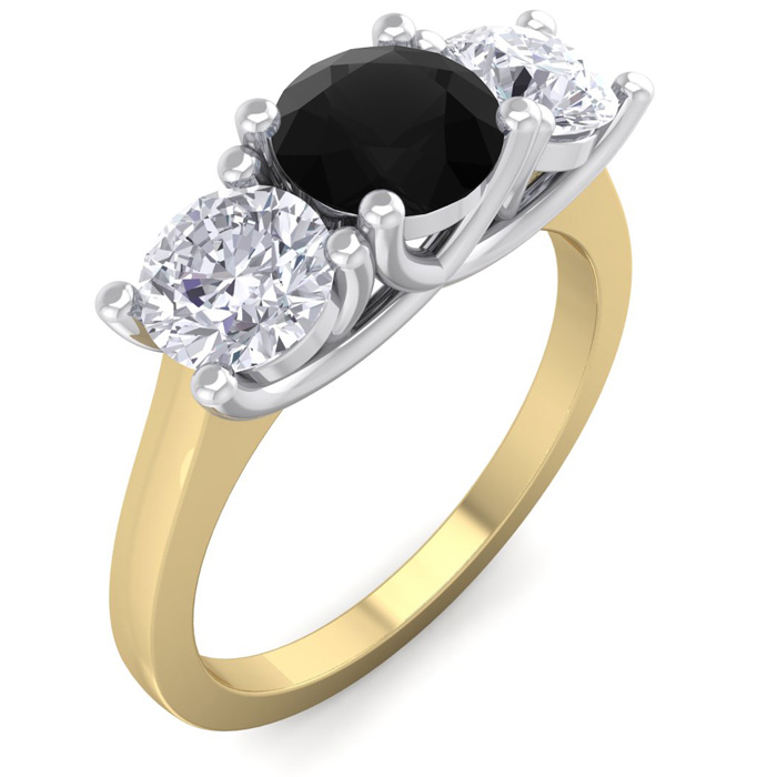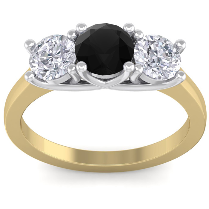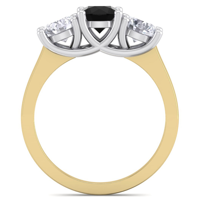 2 Carat Black Diamond Three Diamond Ring In 14 Karat Yellow Gold
