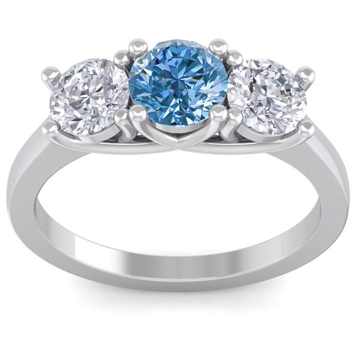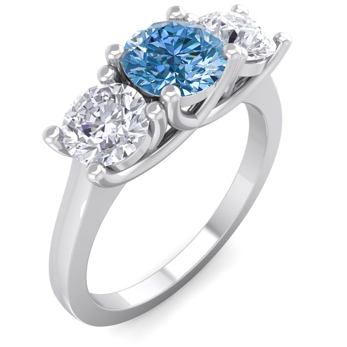 2 Carat Blue Diamond Three Diamond Ring In 14 Karat White Gold