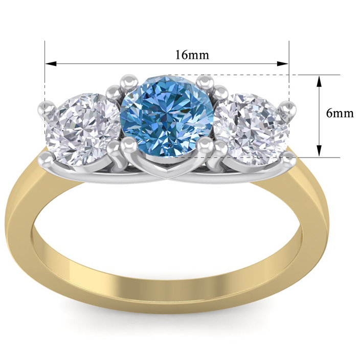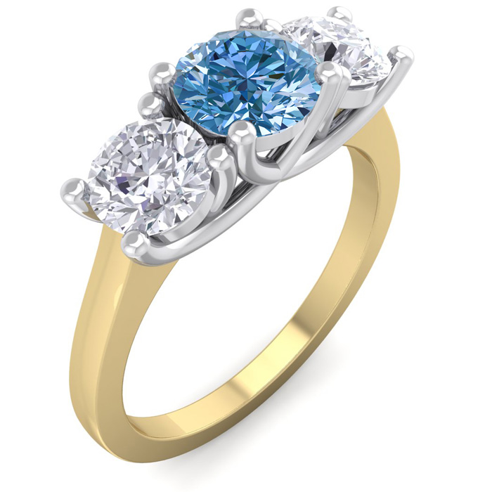 2 Carat Blue Diamond Three Diamond Ring In 14 Karat Yellow Gold