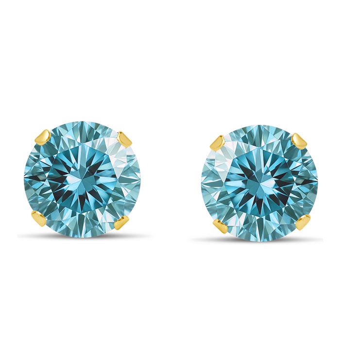 2 Carat Blue Moissanite Stud Earrings In Yellow Gold