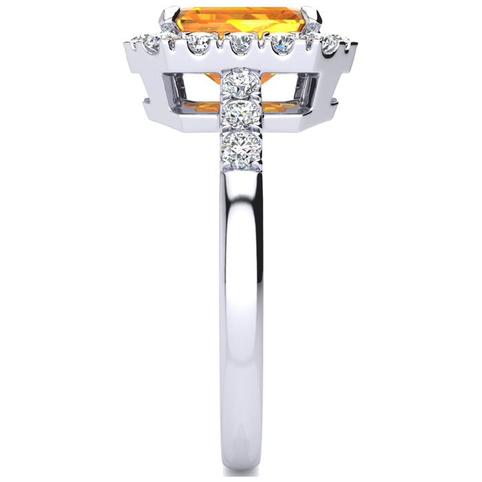 2 Carat Citrine and Halo Diamond Ring In 14 Karat White Gold