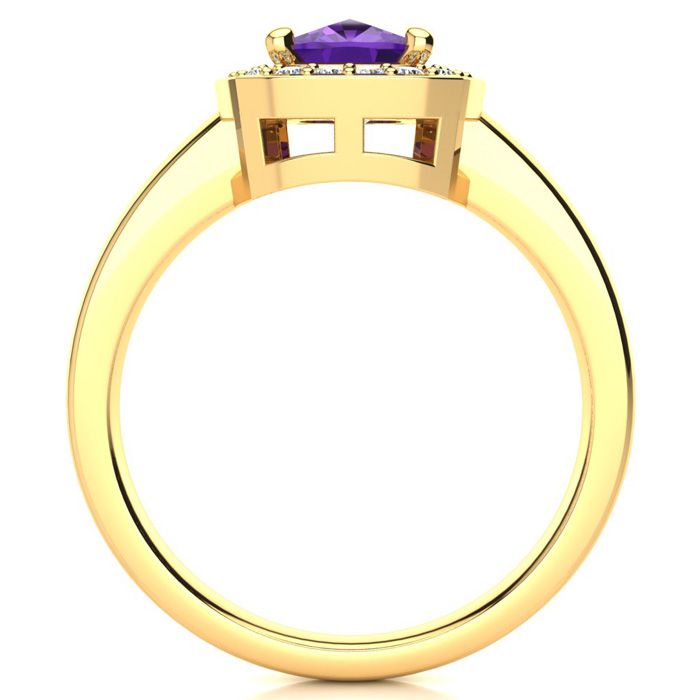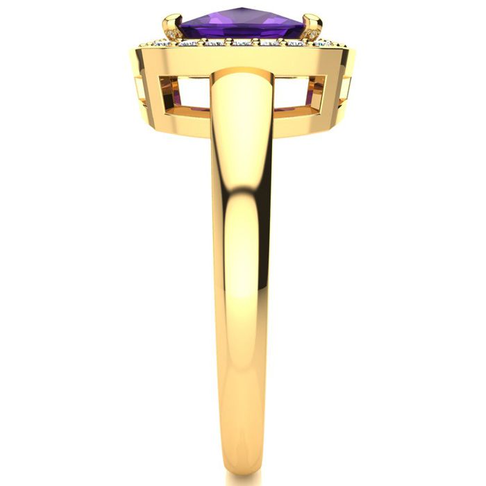 2 Carat Cushion Cut Amethyst and Halo Diamond Ring In 14 Karat Yellow Gold