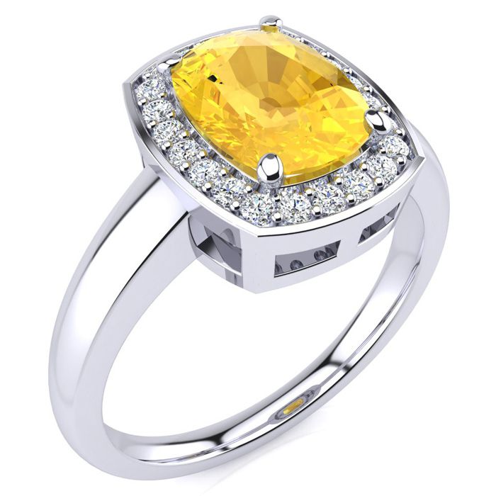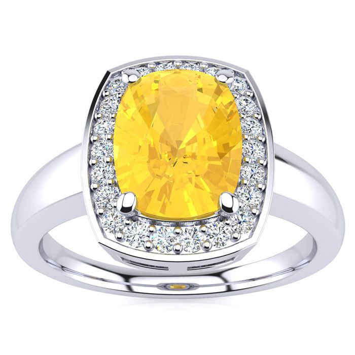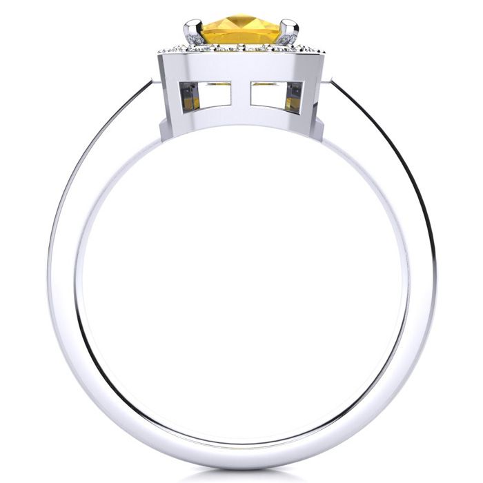 2 Carat Cushion Cut Citrine and Halo Diamond Ring In 14 Karat White Gold