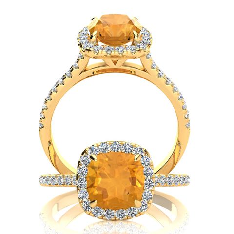 2 Carat Cushion Cut Citrine and Halo Diamond Ring In 14K Yellow Gold