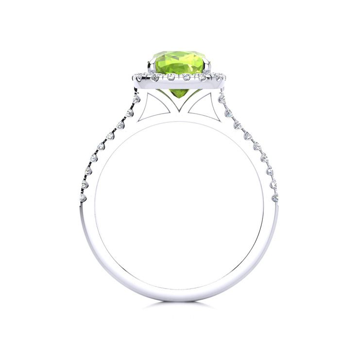 2 Carat Cushion Cut Peridot and Halo Diamond Ring In 14K White Gold