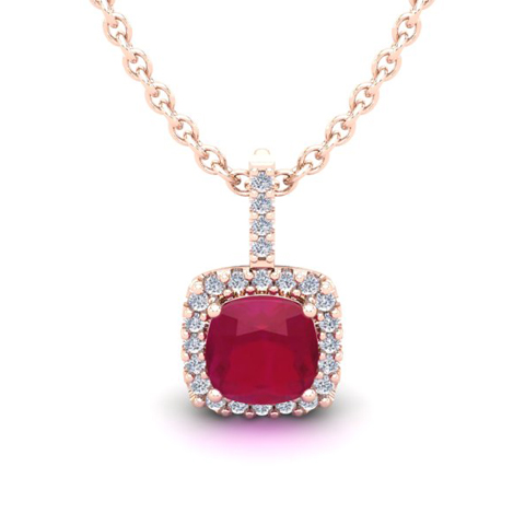 Choosing whether to have accent diamonds on your ruby necklace is truly a matter of style and taste. A ruby necklace can look very nice as a solitaire but adding diamonds is by far the most popular design choice. Diamonds do increase the price of a ruby necklace but not as much as you might think as the diamonds are generally small. A popular ruby necklace design is to have diamonds surrounding the ruby in a halo frame. The diamond halo makes the ruby look a bit larger but most importantly it provides a distinctive color contrast that makes the ruby quite beautiful. Another popular design is to have accent diamonds on the sides of the ruby necklace. This type of ruby necklace design lends an elegance without being too flashy. Without a doubt, combining both a diamond halo and accent diamond in your ruby necklace is the most popular choice.