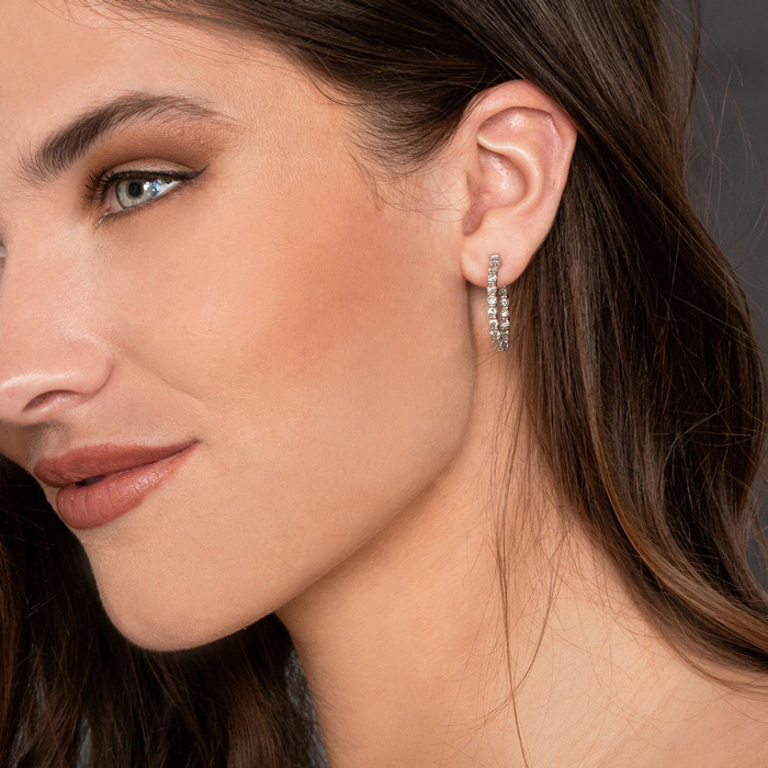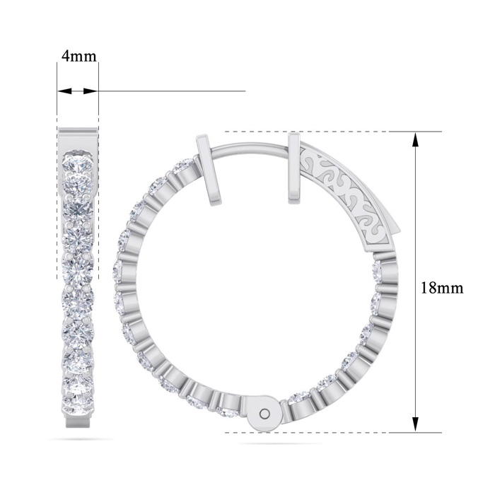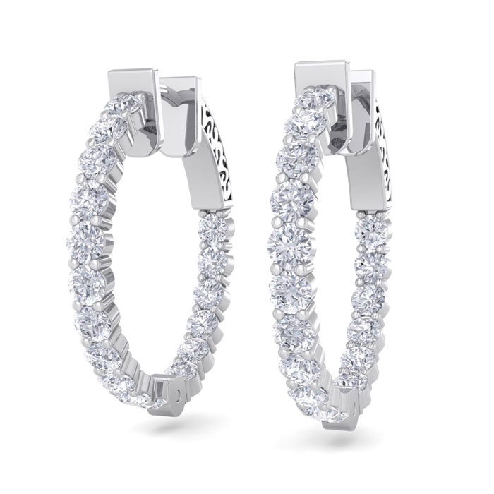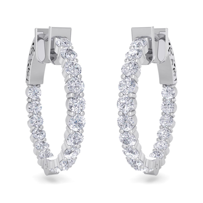 2 Carat Natural Diamond Hoop Earrings In 14 Karat White Gold, 3/4 Inch