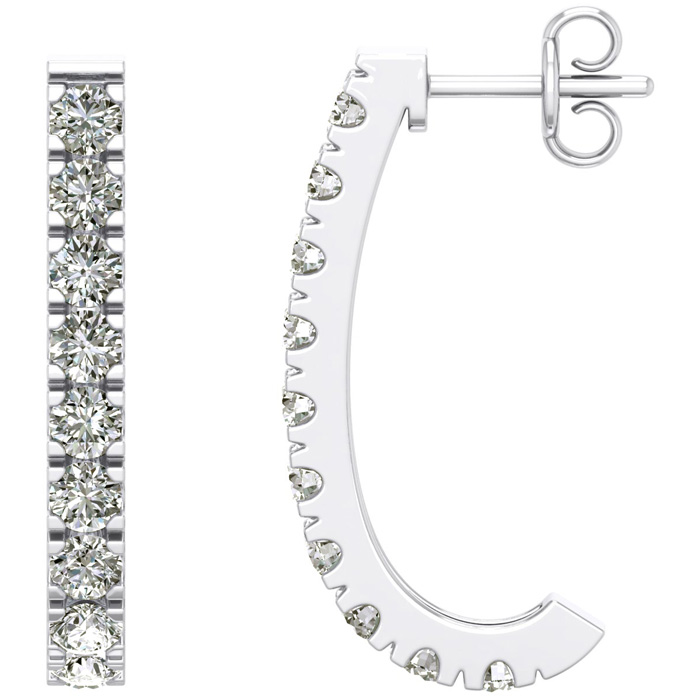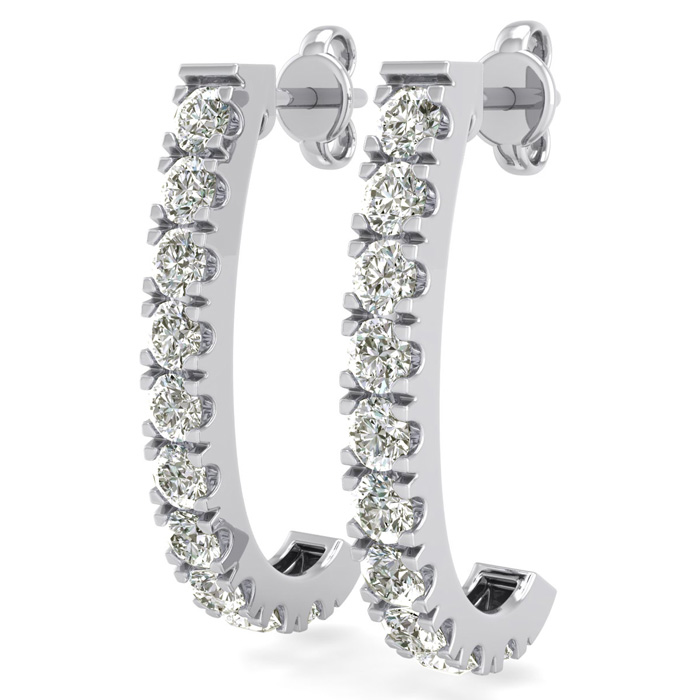 2 Carat Natural Diamond J Hoop Earrings In 14 Karat White Gold