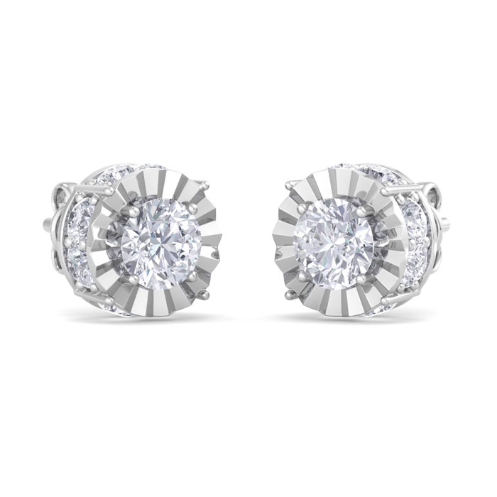 2 Carat Natural Diamond Miracle Stud Earrings In 14 Karat White Gold. Brand New And Super-Hot!