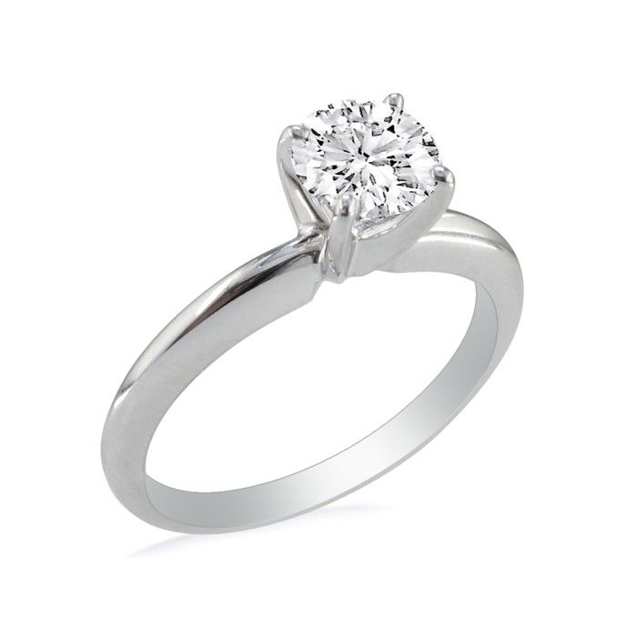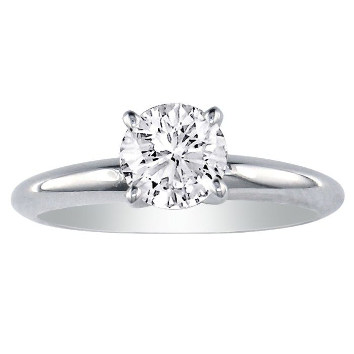 2 carat round brilliant solitaire diamond ring in platinum. The diamond color is H-I, which shows some color, and SI2-I1 which shows eye visible inclusion. This is a nice diamond for someone who wants a big diamond at a very low price.